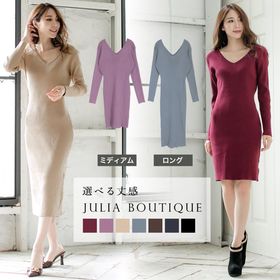 ニットワンピース 冬 レディース ロング タイト ニットワンピ Vネック 膝丈 ミモレ丈 ワンピ タイトワンピース 秋ニット 544 544 Julia Boutique 通販 Yahoo ショッピング